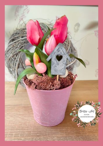 Prémium minőségű tulipános asztaldísz bádogkaspóban