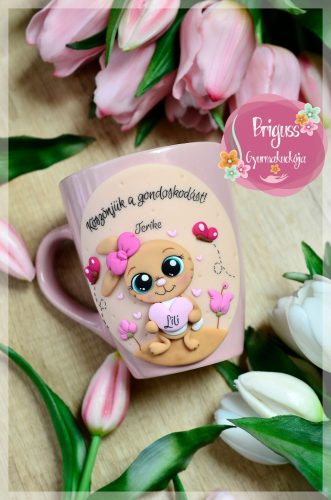 Állatfigurás bögre, gyurma háttérrel